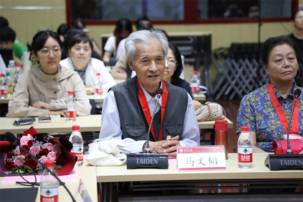 颁发仪式后,“光荣在党50年”纪念章获得者、德语系退休教授马文韬作为代表发表感言。他深情回顾了自己的入党历程,表达了对党的深厚感情,并表示自己将继续保持党员政治本色,严格要求自己不忘初心、继续前进。