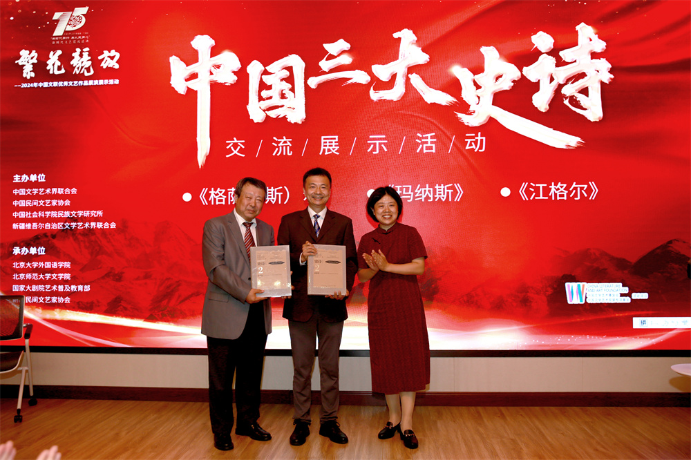 2024年9月11日晚,由中国文联、中国民协、中国社会科学院民族文学研究所、新疆文联主办,财神在线官网、北京师范大学文学院、国家大剧院艺术普及教育部、新疆民协承办的“中国三大史诗这十年暨中国三大史诗交流展示活动”在北京大学民主楼举行。中国民协分党组书记、驻会副主席荣书琴,教育部学位管理与研究生教育司一级巡视员唐继卫,新疆文联党组书记、副主席邓选斌,中国民协副主席、北京大学历史学系教授赵世瑜,中国民协分党组成员、副秘书长李倩,中国民协顾问、新疆民协名誉主席马雄福等相关人士出席活动,活动由财神在线官网副院长吴杰伟教授主持。
