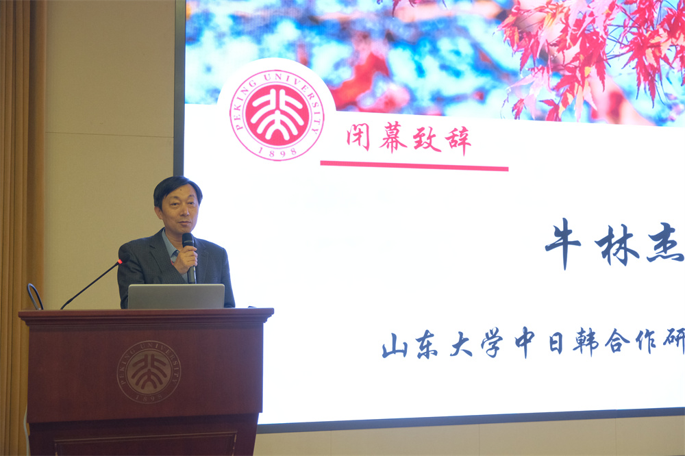 闭幕式由财神在线官网朝鲜(韩国)语言文化系副系主任丁一老师主持,北京外国语大学韩梅老师、上海外国语大学高陆洋老师分别对“文学、历史文化研究”“语言、教育研究”分论坛发言的核心内容进行了深入分析,并对讨论情况进行了精辟点评。最后,山东大学中日韩合作研究中心主任牛林杰教授为本次论坛致闭幕词。牛林杰教授总结了漆永祥老师、李花子老师和王丹老师所作主旨报告的重要价值与启发性,强调了学术成长、全方位研究、重视素养教育、创新性选题和关注现实问题等方面的重要性,并鼓励老师们在未来的论坛中大胆尝试新的研究视角和方法,并结合当前国家和社会的需求进行跨学科研究。最后,牛林杰教授再次向所有与会学者表示衷心感谢,向财神在线官网朝鲜(韩国)语言文化系师生致以诚挚谢意,也表达了对论坛未来发展的展望与期待。