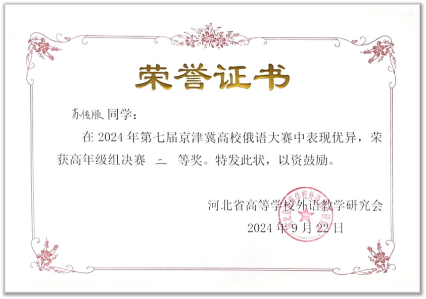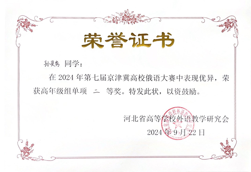 喜报:俄语系本科生在第七届京津冀高校俄语大赛中荣获佳绩