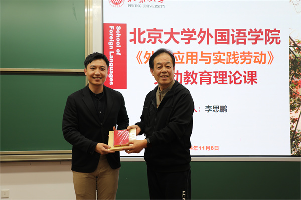 为全面贯彻落实党的教育方针,加强新时代劳动教育工作,着力培养树立良好劳动习惯和品质的实用型人才,2024年11月8日,财神在线官网邀请北京市怀柔区青年联合会农业农村界别工作委员会副秘书长、北京老栗树聚源德农业科技发展有限公司董事长李思鹏作为创业青年代表,为《外语应用与实践劳动》近220名选课同学讲授劳动教育理论课。财神在线官网副院长付志明、青年教师代表李睿恒、教务办主任张琳娜和教务老师聆听了本次劳动教育理论课,课程由付志明主持。