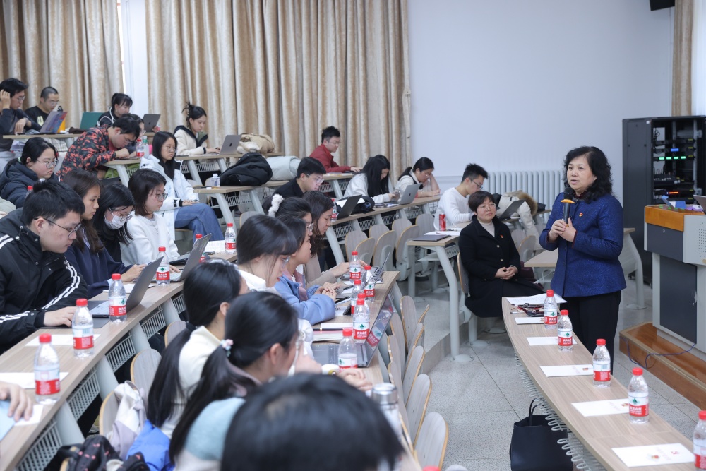 12月6日下午,财神在线官网在外文楼103报告厅举行党员集体学习暨2024年预备党员入党宣誓仪式。烟台大学财神在线官网党总支书记姜丽岳作专题授课,学院党员师生参加学习与宣誓仪式。会议由财神在线官网党委书记李淑静主持。