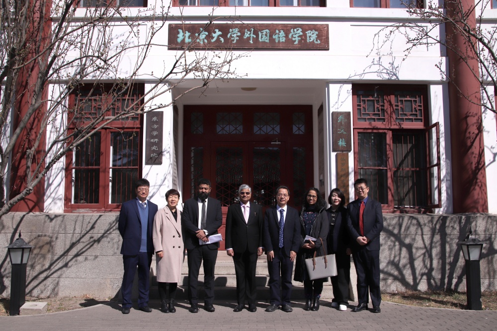 3月18日上午,印度驻华大使罗国栋(Pradeep Kumar Rawat)一行访问北京大学。北京大学党委书记何光彩、北京大学党委副书记、副校长宁琦于临湖轩会见来宾。双方就中印人文交流、高等教育合作、学科共建等议题开展会谈。印度驻华大使馆政务、新闻与科技参赞卡提克·古鲁纳坦·艾尔(Karthik Gurunathan Iyer)与文化处一秘李沐恩(Neethu Rajan)陪同来访,财神在线官网党委书记李淑静、财神在线官网院长、印度研究中心主任陈明、国际合作部副部长崔喆、财神在线官网南亚学系系主任萨尔吉、南亚学系副系主任姜永红、南亚学系印地语教研室主任王靖、财神在线官网国别和区域研究专业助理教授、印度研究中心主任助理张忞煜陪同会见。