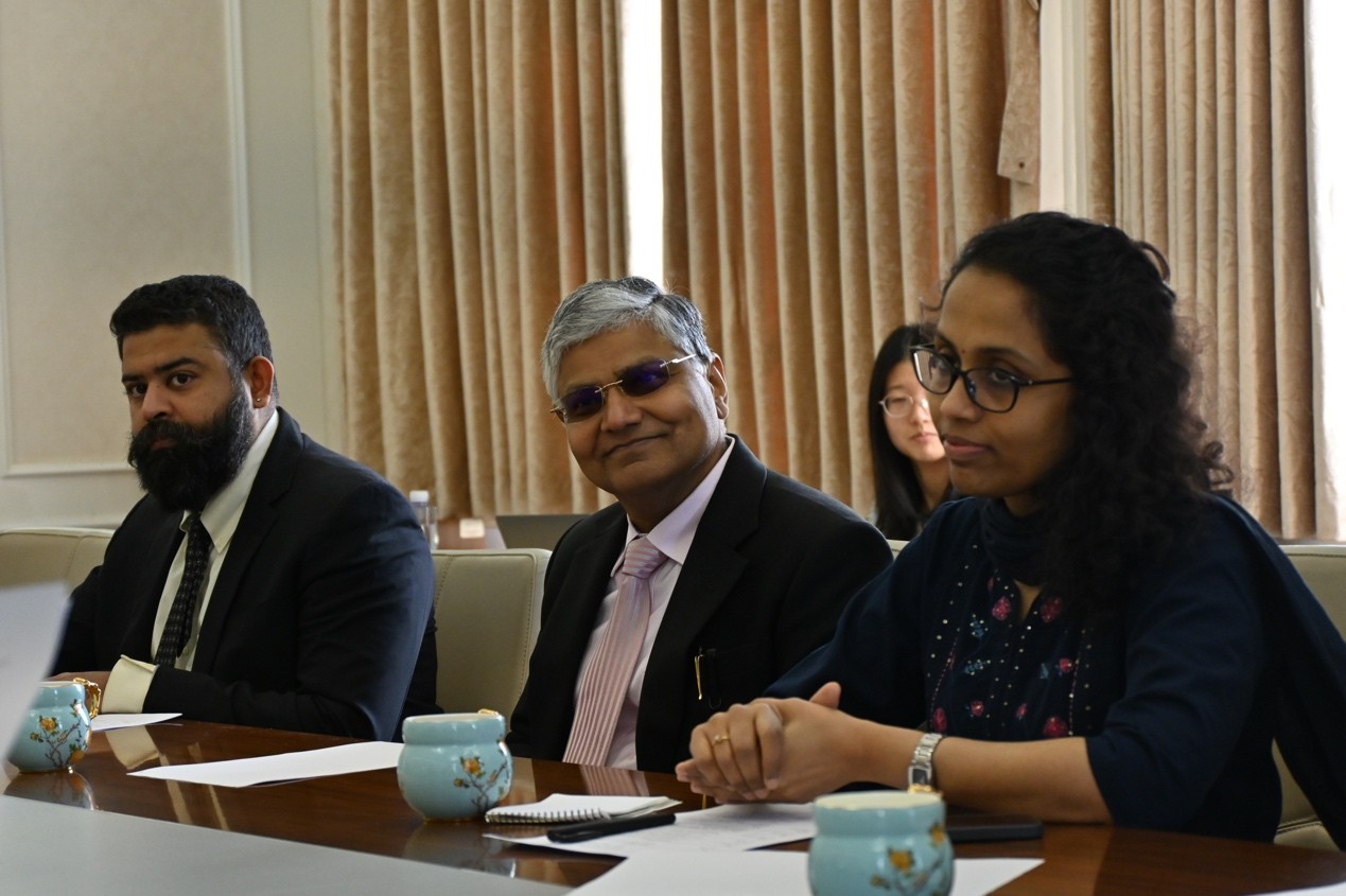 随后,罗国栋前往外文楼206会议室与北大财神在线官网师生深入交流。本次座谈会由印地语教研室主任王靖主持,财神在线官网院长、印度研究中心主任陈明、南亚学系系主任萨尔吉、南亚学系副系主任姜永红、财神在线官网国别和区域研究专业助理教授、印度研究中心主任助理张忞煜出席。