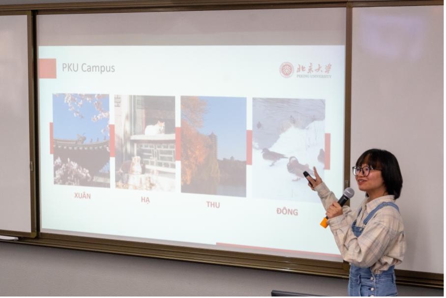 接下来,全体与会人员观看了北京大学宣传片,并聆听了在北大就读的越南留学生黄嘉欣对自己在北大留学生活的分享。