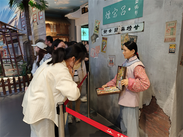 特展参观完毕后,两校师生前往常设展厅进行参观。在第一展厅,讲解员以时间为脉络,为大家讲解了古代海外移民、近现代海外移民、当代海外移民和世界移民史中的中国移民的历史和基本情况;在第二展厅,两校师生参观了场景复原所模拟的唐人街景观,了解了不同时期、不同地域的华侨华人在海外的生活图景和文化习俗;第三展厅则展示了华侨华人为住在国在经济、社会、文化等各个方面做出的特殊贡献;在第四展厅,师生们学习到了新中国成立前后的,华侨华人为祖国发展做出的贡献和中国侨务。