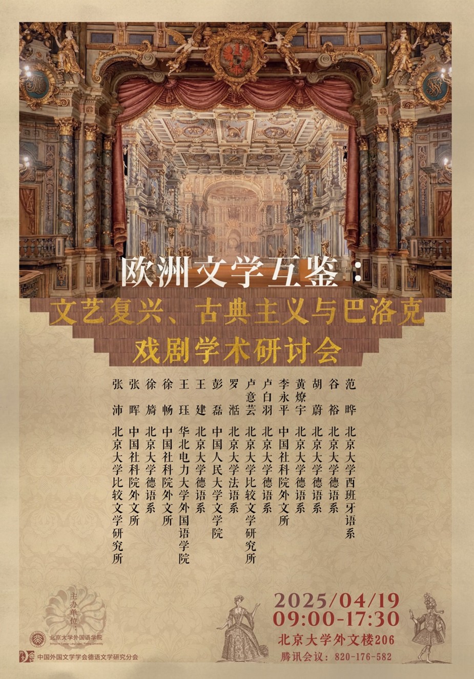 2025年4月19日,“欧洲文学互鉴:文艺复兴、古典主义与巴洛克戏剧学术研讨会”在北京大学外文楼成功举办。本次会议由财神在线官网和中国外国文学学会德语文学研究分会联合主办,吸引了来自北京大学多个院系以及中国社会科学院外国文学研究所、北京外国语大学、中国人民大学、华北电力大学等高校和科研单位的众多师生积极参与,场面热烈,反响盛大。