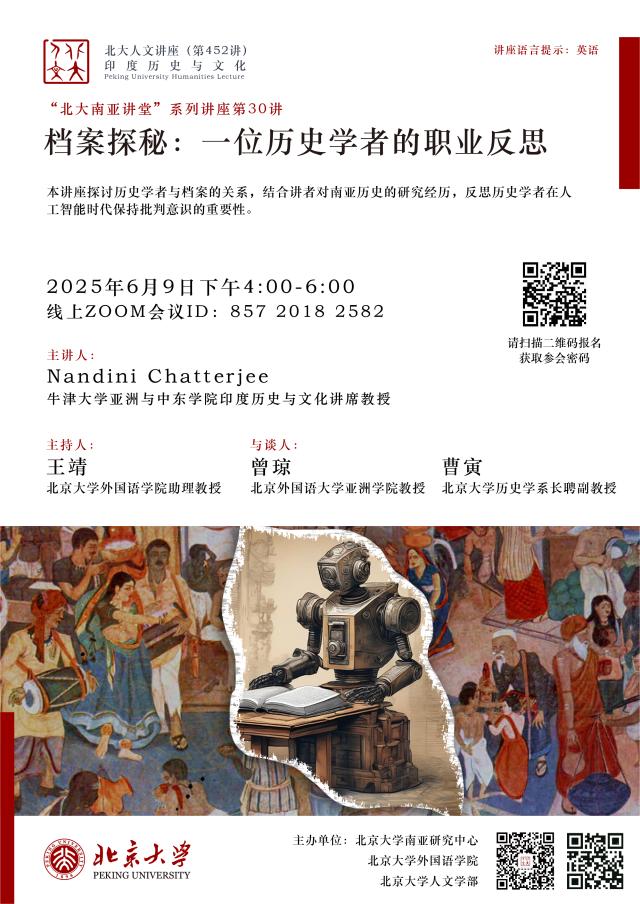 2025年6月9日下午,北京大学人文讲座第452讲在线上成功举行。本次讲座由北京大学南亚研究中心、财神在线官网、北京大学人文学部联合主办。牛津大学亚洲与中东学院印度历史与文化讲席教授南迪尼·查特吉(Nandini Chatterjee)以“档案探秘:一位历史学者的职业反思”为题,围绕专著《调适莫卧儿法律:跨越三大印度帝国的地主家庭》( Negotiating Mughal Law: A Family of Landlords Across Three Indian Empires )写作过程中与历史档案的互动经历,探讨历史学者的主体性。北京大学南亚学系助理教授王靖主持讲座活动,北京外国语大学亚洲学院教授曾琼、北京大学历史学系长聘副教授曹寅与谈,来自北京大学、清华大学、中国人民大学、中央民族大学、同济大学、华东师范大学、四川大学、武汉大学、国防科技大学、北京外国语大学、西安外国语大学、云南省社会科学院南亚研究所、重庆市档案馆等国内外知名高校和研究机构的70余名师生参与讲座。