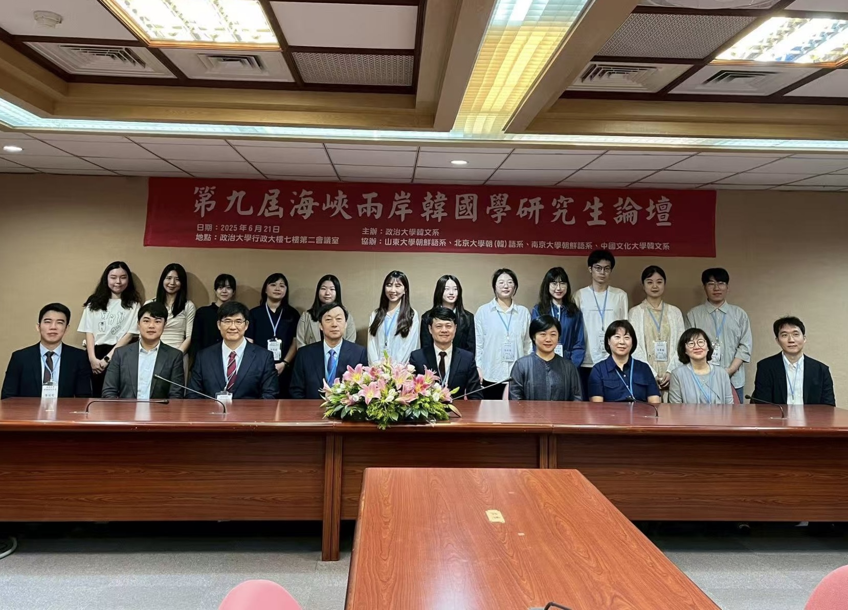2025年6月21日,“第九届海峡两岸韩国学研究生论坛”在台湾政治大学行政大楼7楼第二会议室举行。来自北京大学、台湾政治大学、山东大学、南京大学、台湾中国文化大学的三十余名专家学者与研究生参会。“海峡两岸韩国学研究生论坛”由财神在线官网朝鲜(韩国)语言文化系、山东大学韩国学院、台湾政治大学外国语文学院韩国语文学系于2014年联合发起,2017年南京大学财神在线官网朝鲜语系加入。随着今年台湾中国文化大学国际暨外语学院韩国语文学系的加入,论坛已扩展为五校论坛。