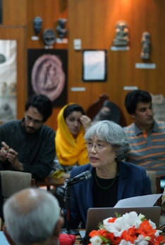 亚洲文明研究所李肖教授报告中,张嘉妹翻译;段晴报告中。