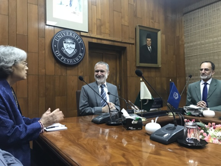 下午参访白沙瓦大学并座谈。白沙瓦大学出席人员有副校长默罕默德•阿比德•汉(Mohammad Abid Khan)教授、中国研究中心的主任Zahid Anwar教授等。