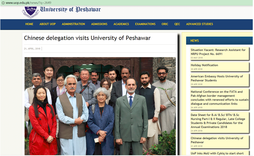 真纳大学与白沙瓦大学对这次访问都高度重视,分别在校园网的主页上发布了相关新闻。(梵巴专业供稿)
