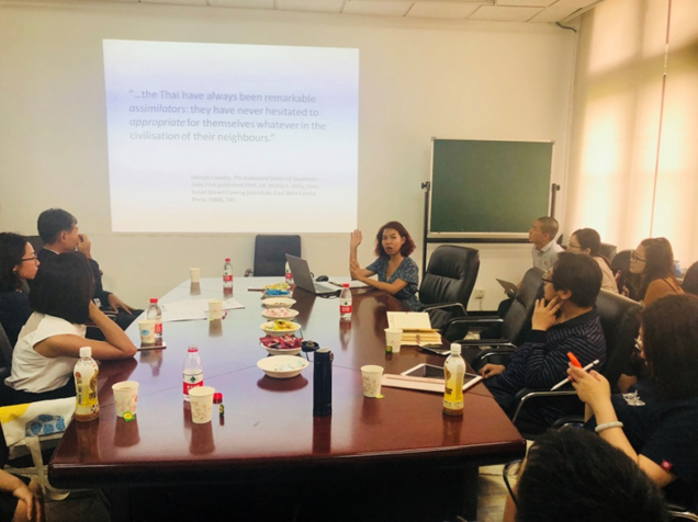 下午,萨采•塞邢教授、厄苏达•邢兰蓬博士、塔瓦威•丘迪巴底博士和陈柳玲助理教授在外文楼111室为北京大学的师生带来了一场主题为“泰国艺术史与中泰美术交流”的学术讲座。该讲座系北京大学诗琳通泰学讲席项目推动下的“对话泰国艺术史”系列讲座的第一场,由东南亚系泰语教研室的熊燃博士主持。