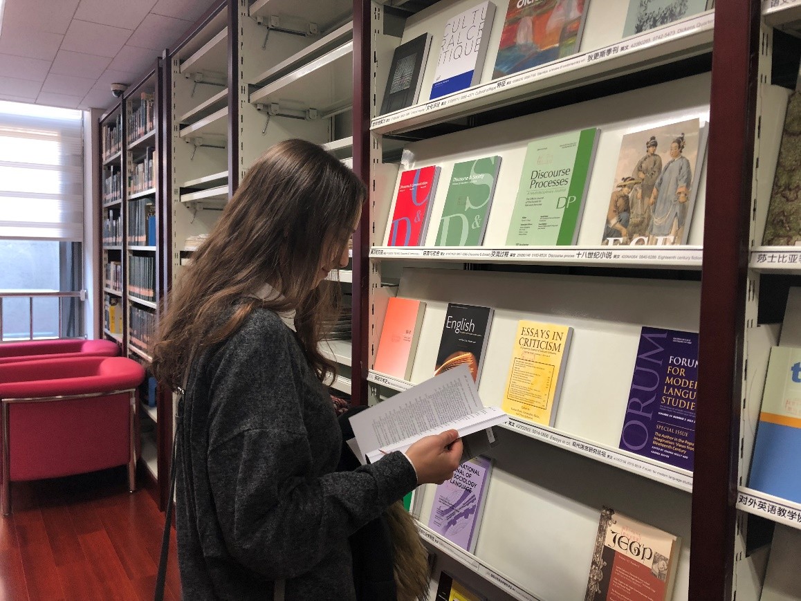 外籍教师翻阅外文书刊