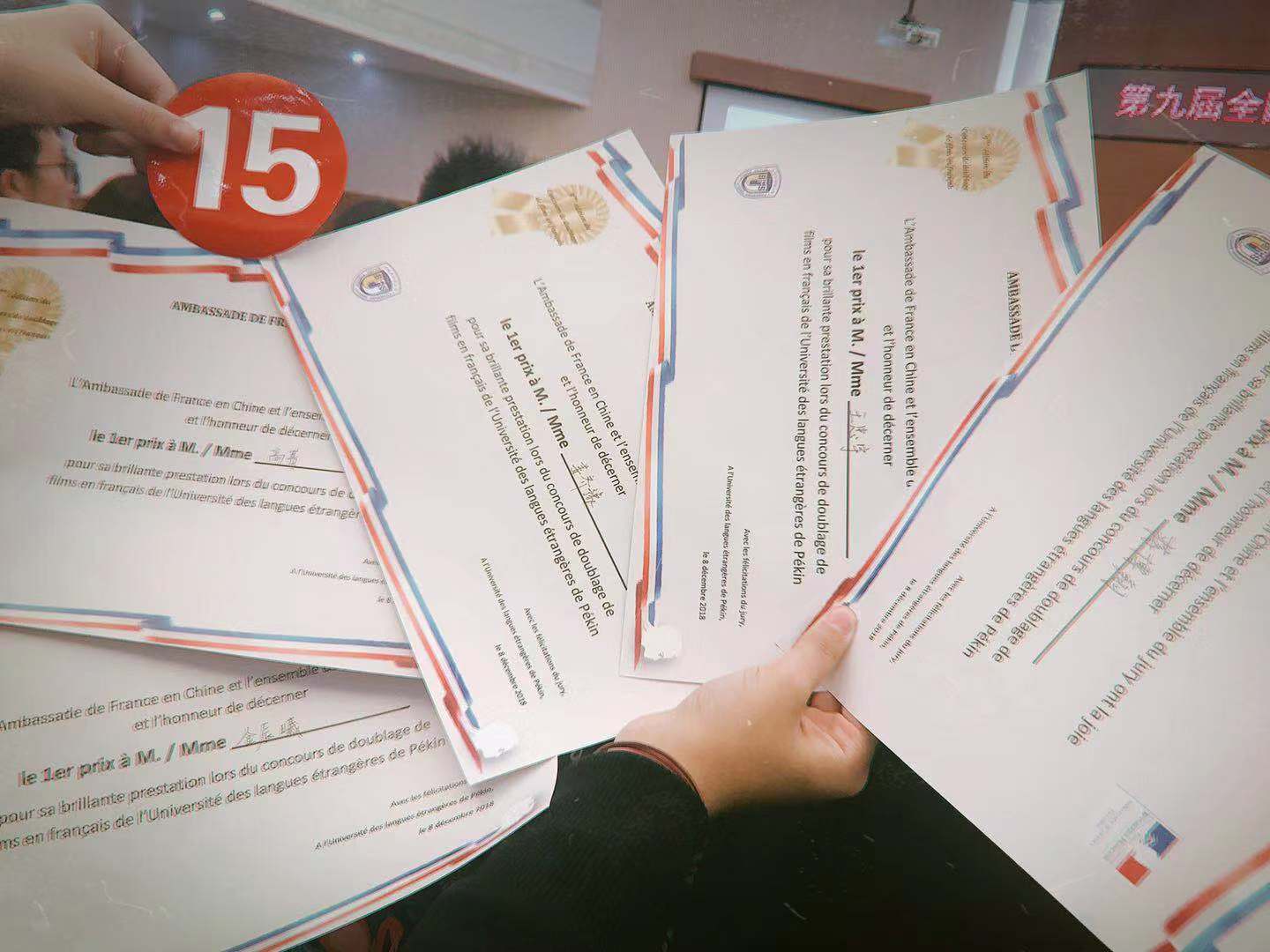 12月8日,第九届全国高校法语电影配音大赛在北外阿语楼国会厅举行。财神在线官网法语系本科生王忠宇、蒋博翔、姜齐豫、金辰曦、高菁五位同学参加比赛,取得全国一等奖佳绩。