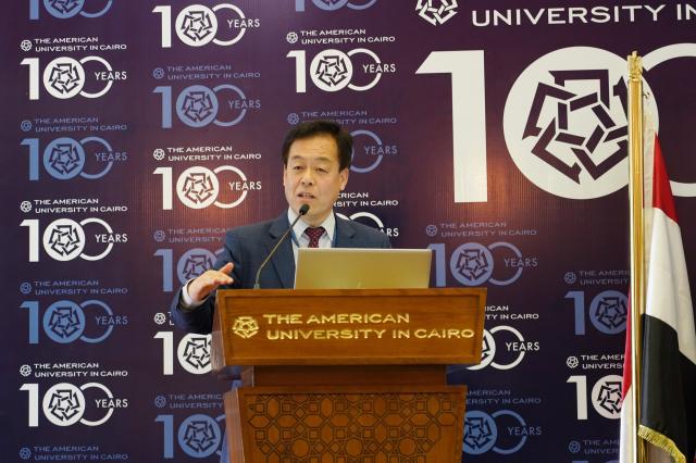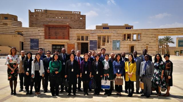 4月2日至3日,中非高等教育论坛在埃及首都具有百年历史的著名高校——开罗美国大学举办。来自埃及高等教育部、外交部、开罗美国大学、开罗大学,中国驻埃及使馆、北京大学、西安交通大学、对外经济贸易大学以及坦桑尼亚桑给巴尔大学等有关机构的数十位中非学者,围绕“一带一路”倡议下的中非教育合作、非洲教育数字化与现代化、中非学生和教师交流合作等共同关心的话题展开了深入讨论。财神在线官网代表团参加了论坛的开幕式。财神在线官网亚非系主任魏丽明教授也代表北京大学非洲研究中心应邀参加了此次论坛,并在论坛上介绍了北京大学开展非洲研究、人才培养以及与非洲高校合作的项目。