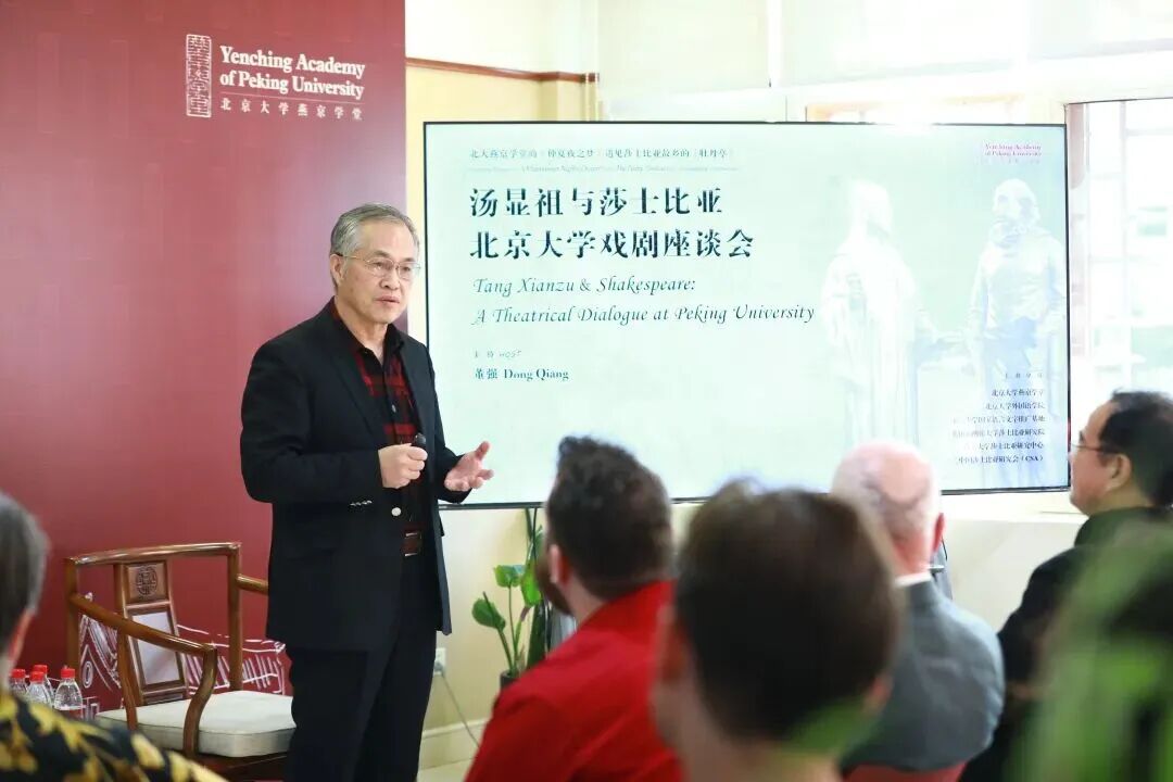 燕京学堂董强院长主持了会议,他在充满古典诗意的致辞中指出,汤显祖和莎士比亚代表着16世纪至17世纪东西方戏剧的最高峰,他们的剧作是世界文学的伟大杰作。“莎翁故乡--英国埃文河畔的斯特拉特福,因莎翁闻名世界,成为文学爱好者的朝圣之地;地名“Stratford-upon-Avon”中“upon”的用法,既凸显镇与河的关联,又具诗意,让人联想青年莎翁临河观天,未像纳西索斯沉迷自我,反倒因水中的蓝天探索浩瀚的人心、社会与历史。同理,成长于抚河畔的汤显祖,其故乡临川即意为邻河、临河。他见河水流动,联想到孔子“逝者如斯”的感叹,思考人在天地自然规律中如何留痕,进而发现人类的“梦”与“至情”。时光流逝亦积累人类精神财富,莎翁与汤显祖便是其中重要代表。董强院长表示,燕京学堂坚守文化信念,既为中外文明互鉴搭建桥梁,也通过推动学生深度交流,助其明晰文明传承与创新的责任。此次同学们虽身负实习、学业压力,仍主动挤时间参与《仲夏夜之梦》表演,尽显对跨文化交流的热忱。黄必康教授倾注心血翻译《牡丹亭》,在今天由英国的教授与同学们演绎出来,让东方古典的雅致与西方舞台的灵动碰撞出奇妙的火花,成为中外师生以艺术为媒、共探文明内核的生动实践。这不仅让《牡丹亭》的昆曲意蕴跨越山海、直抵人心,更印证了优秀文化的共通性,为青年一代深化跨文化理解、践行文明传承创新使命注入了鲜活力量。”