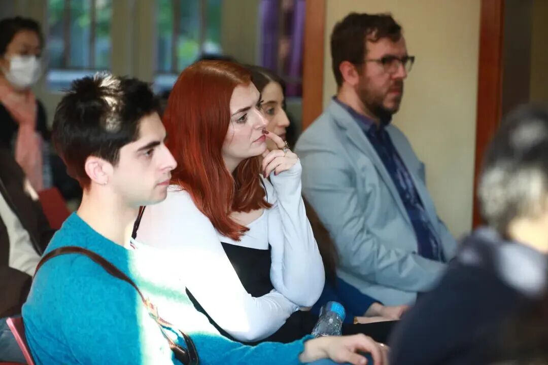 研讨会上,来自莎士比亚故乡的剧组演员代表Liberty Myers也做了简短发言,他代表同学们感谢北大燕京学堂和财神在线官网的邀请,分享了剧组在排演《牡丹亭》过程中的感受和演出经验。三位燕京学堂的同学——导演Luca Bustani Wood、主演Isabella Concetta Gualano与艺术总监Kristina Ming-xue Gilje Chiu,代表《仲夏夜之梦》剧组发言。他们向那些在幕后默默付出、未能亲临现场的伙伴们表达了感谢,从剧本打磨、舞台搭建到服装道具筹备,每一份支持都化作了演出顺利呈现的保障。值得一提的是,参与本次演出的同学们并无一人是专业演员,也从未接受过系统的戏剧表演培训。但对莎士比亚经典的热爱与对舞台的憧憬,让他们跨越了专业的界限:从最初对台词节奏的生涩拿捏,到肢体表达的反复磨合,再到对角色情感的深度揣摩,大家利用课余时间全心投入、相互鼓劲,用纯粹的热情与不懈的坚持,将这部奇幻喜剧的魅力淋漓尽致地展现了出来。这份“非专业”的坚守,更让这场演出多了一份纯粹的动人力量。(以上引文出自燕京学堂有关报道,谨此致谢)。两个剧组同学们讨论热烈,他们对戏剧艺术的热爱和探索精神都受到了与会者的一致赞扬。