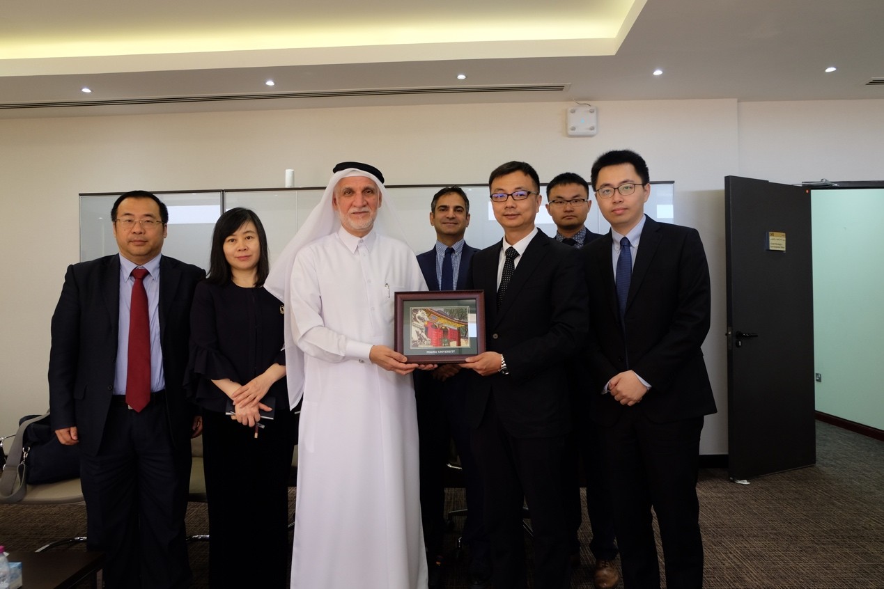 4月17日至20日在卡塔尔访问期间,代表团第一站参访机构为卡塔尔大学。卡塔尔大学副校长达尔维什•阿卜杜拉赫曼(Darwish Abdulrahman H. Al-Emadi)、副校长欧麦尔•安萨里(Omar Al-Ansari)、副校长哈立德•哈提尔(Khalid Al-Khater)和国际事务处处长凯撒•沃曾(Cesar Wazen)接见了团队师生。北京大学卡塔尔讲席教授吴冰冰博士首先向卡塔尔大学方面介绍了卡塔尔讲席在北京大学的运作现状和未来的发展规划,以及财神在线官网国别和区域研究专业的基本情况,副校长达尔维什对此给予了肯定与赞赏。双方还表示,希望能够进一步扩展北京大学与卡塔尔大学的合作空间,在继续夯实和加强卡塔尔大学与财神在线官网合作的基础上,充分发挥两所大学的综合性优势,寻求两校在医学研究领域的合作空间。会谈结束后,团队师生在工作人员的带领下参观了卡塔尔大学校园。