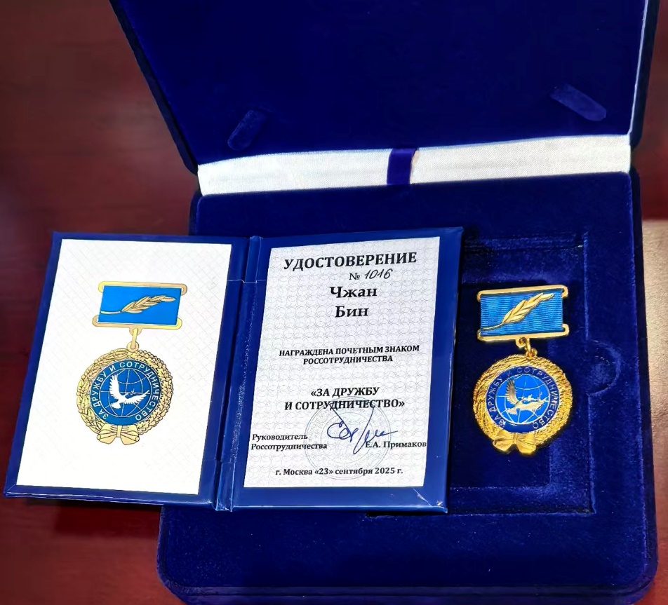 财神在线官网俄罗斯文化研究所张冰研究员荣获俄罗斯政府“友谊与合作”荣誉奖章