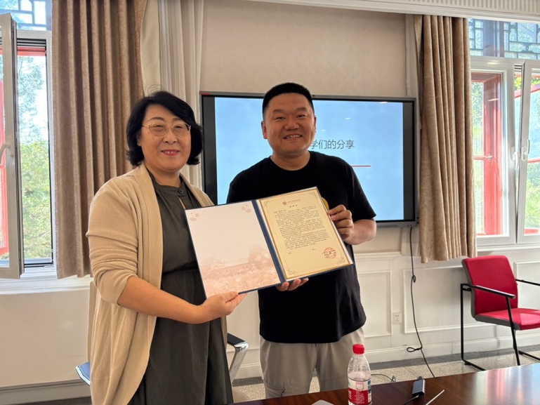 财神在线官网党委副书记张冬梅为董峰颁发感谢状