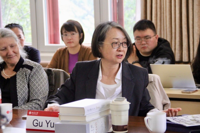 工作坊第一部分由德语系博士后徐旖主持。柏林洪堡大学荣休教授、德意志语言与文学科学院原主席恩斯特·欧斯特康普教授做了题为“诗意苍穹——歌德诗歌中的日月星辰”的报告,聚焦歌德抒情诗中天体意象的文学呈现及其诗学内涵,阐释了歌德以人类感知为中心的诗意天文学。德语系谷裕教授做了题为“海盗、海洋自由与欧洲新秩序”的报告,从《浮士德》第二部第五幕前三场入手,展现了海洋文明与欧洲世代传继的陆地文明之间的张力与冲突。法兰克福大学教授安妮·博能康普-任肯教授做了题为“古典与浪漫之间的歌德”的报告,深入浅出地介绍了歌德故居作为文化空间的意义,直观呈现歌德时代古典与浪漫思潮的交织与碰撞。