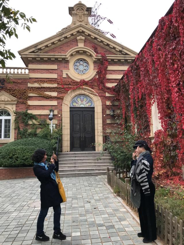 随后我们来到极具欧洲风情的爱斐堡小镇。这座小镇是根据法国凡尔赛宫旁边的一个小镇复制而来。小镇内建有客房、邮局、商店、教堂、咖啡厅等欧式建筑。这里是赏红的最佳场所,建筑物周边的枫树已是红黄交织,攀爬在围墙上的串串枝藤更是叶红似火,红得使人不忍离去。