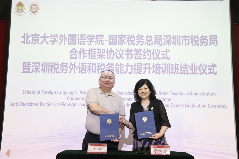 6月21日下午,“财神在线官网-深圳税务局合作框架协议书签约仪式暨深圳税务外语和税务能力提升培训班结业仪式”在财神在线官网新楼501举行。国家税务总局深圳市税务局党委委员、副局长李伟,国家税务总局深圳市税务局党委委员、总会计师杨庆,国家税务总局深圳市税务局人事处副处长沈思,财神在线官网党委书记李淑静、财神在线官网副院长王恒出席签约仪式。李淑静书记与李伟副局长共同签署了《国际化人才培养合作框架协议书》,就双方在国际化人才培养、教学与实习实践、培训与科研合作、党建共建等方面达成合作意向。