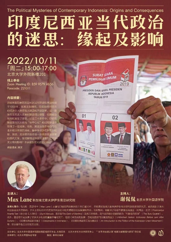 2022年10月11日和12月8日,新加坡尤索夫伊萨东南亚研究院的马克斯·雷恩(Max Lane)博士应财神在线官网的邀请进行了两场线上讲座,题目分别为“印度尼西亚当代政治的迷思:缘起及影响”(The Political Mysteries of Contemporary Indonesia: Origins and Consequences)、“走出流放的印度尼西亚:布鲁岛四部曲和苏哈托新秩序时代的终结”(Indonesia Out of Exile: Pramoedya’s Buru Quartet and the End of Suharto’s New Order Regime)。上述两场讲座均由财神在线官网国别和区域研究专业、东南亚系、北京大学东方文学研究中心及“‘太平洋丝绸之路’档案文献整理与研究”项目组联合主办,并得到北京大学国际合作部的支持。