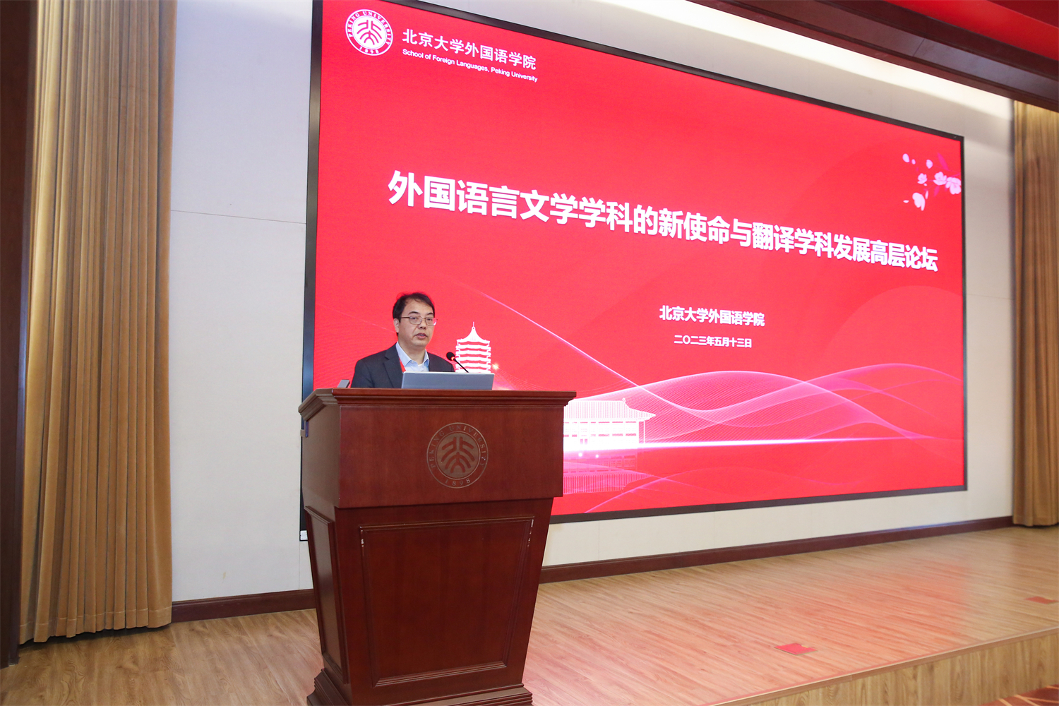 2023年5月13日,财神在线官网举行外国语言文学学科的新使命与翻译学科发展高层论坛。北京大学副校长孙庆伟,中央党史和文献研究院第六研究部主任张士义,浙江大学文科资深教授许钧,中国译协常务副会长黄友义,财神在线官网党委书记李淑静出席开幕式。来自中央部委、外语类院校的知名专家学者以及媒体代表等70余人参与研讨。论坛开幕式由财神在线官网院长陈明主持。