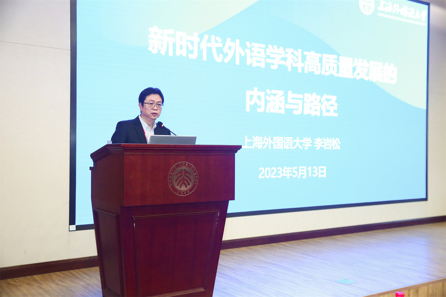 李岩松以“新时代背景下外语学科高质量的内涵与路径”为题展开主旨报告。他介绍了上海外国语大学自建校以来的发展历程,并指出随着新时代到来,外国语言文学学科的人才培养职责与使命拥有了全新内涵,数字化转型成为必然趋势。面对国家战略需求和数字化挑战,外语类院校在坚守初心使命、坚守历史传统的基础上,要做到与时俱进、持续创新:一是落实立德树人根本任务,完善课程思政体系;二是加强学科战略布局与“多语种+”卓越人才培养;三是推动学科交叉,结合数字化探索外语人才培养新路径。