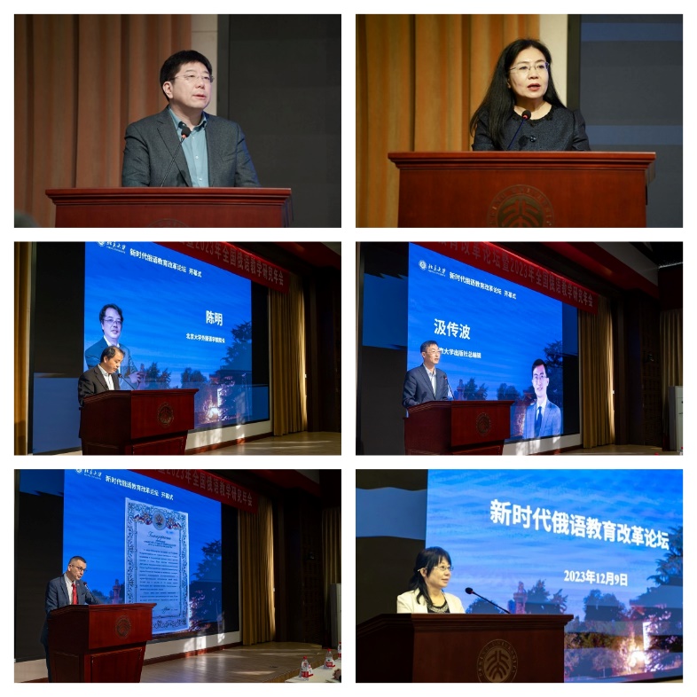 2023年12月9日,新时代俄语教育改革论坛在北京大学召开。本次高层论坛由财神在线官网俄罗斯语言文学系、教育部“俄语人才培养模式改革虚拟教研室”、中国俄罗斯东欧中亚学会俄语教学研究分会、北京大学出版社联合举办,来自全国高校近百名俄语语言文学专业专家学者、教师参加讨论,围绕国家级一流本科专业建设、国家级一流本科课程建设、高质量外语专业教材建设及有组织科研、服务中国式现代化建设的俄语人才培养改革与实践、数智化时代的高校俄语教学改革和全国俄语教育改革云共同体(虚拟教研室)建设等议题进行发言和交流,探讨当前国家发展的迫切需要,借鉴国内外俄语专业办学的成功经验,思考我国俄语专业的定位、发展与方向。