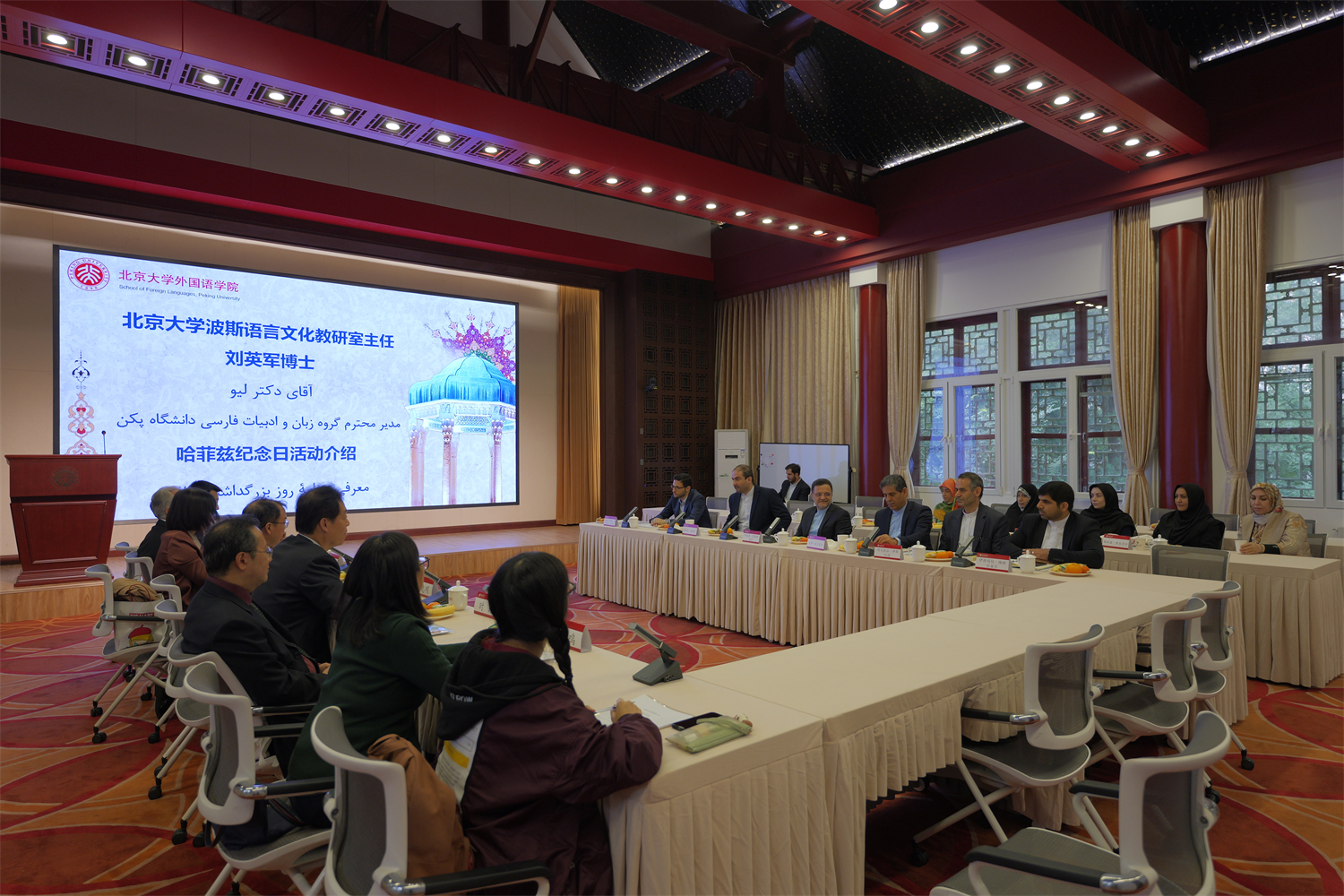 2023年10月12日上午,伊朗伊斯兰共和国新任驻华大使穆赫森·巴赫蒂亚尔率团访问北京大学,在结束与北京大学校领导的会见后,前往财神在线官网民主楼参加14世纪著名伊朗诗人哈菲兹纪念日座谈。