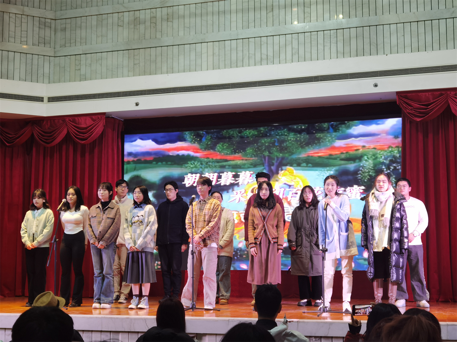 我院2021级印地语专业六位本科生展演的诗朗诵,选自印度阴影主义作家、诗人杰耶辛格尔·伯勒萨德(Jaishankar Prasad)的著名诗作《眼泪》(Annsu)。同学们优美的朗读、流利的发音获得连连掌声与高度评价,展现了印地语学习者对印度经典作品的优秀演绎成果。