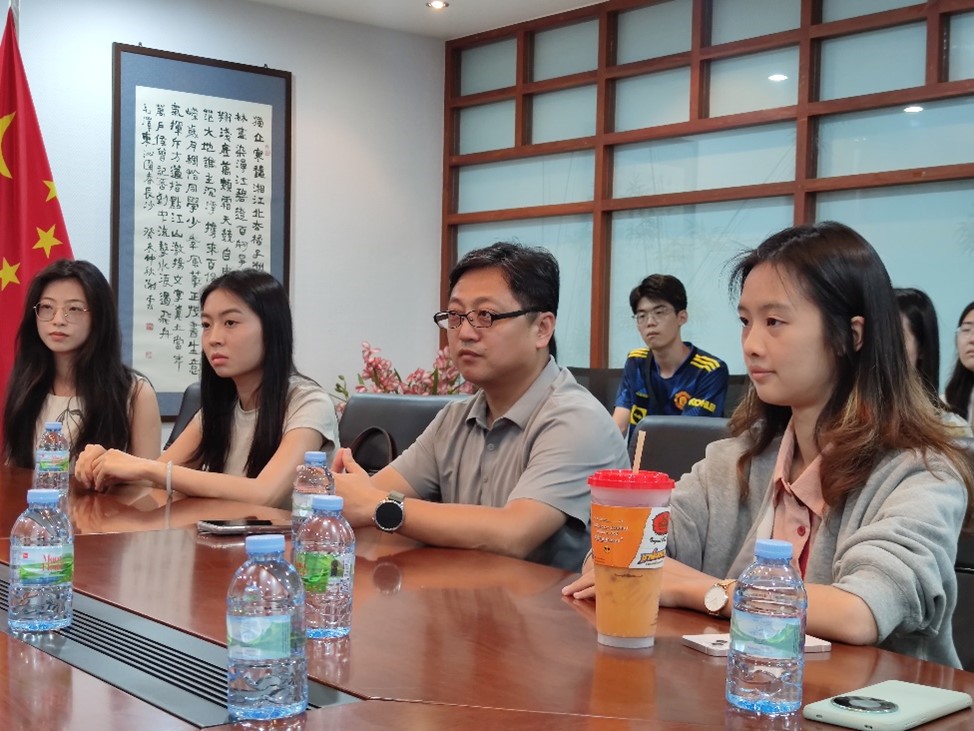 2024年8月4-17日,财神在线官网东南亚系泰语专业师生,赴曼谷参加由泰国朱拉隆功大学主办的“庆祝中泰建交50周年泰国语言文化暑期研修”活动。2024年8月12日下午,北京大学泰语专业的本科生与研究生在东南亚系副主任金勇长聘副教授的带领下,前往中国驻泰国大使馆参访。此次活动旨在加强泰语专业与中国驻泰国大使馆的交流与合作,拓宽学生的国际视野,增强对中泰关系的理解和认知。