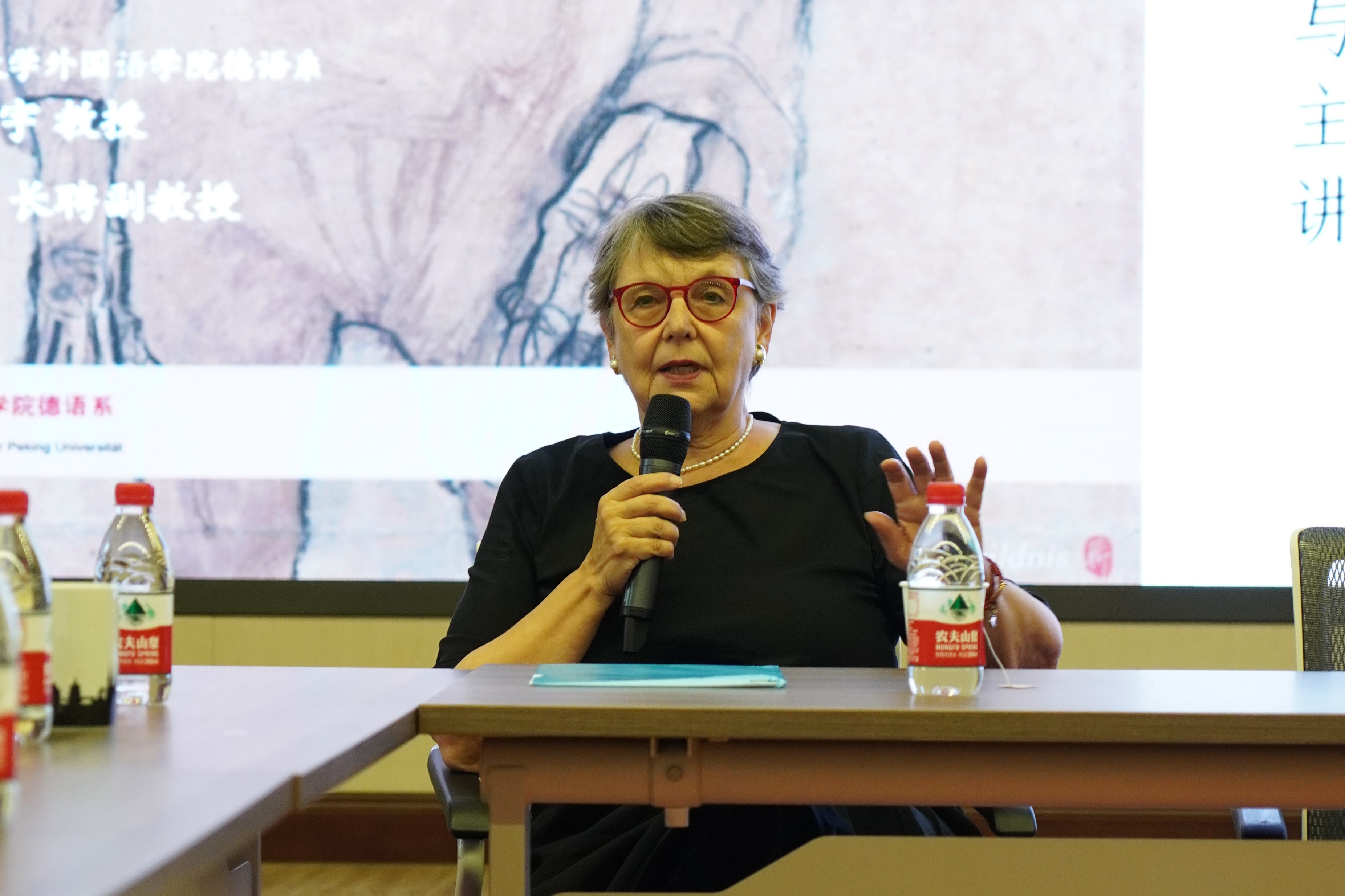 9月18日下午,维也纳档案图书馆前馆长、维也纳历史学会前会长马琳达博士(Dr. Klaralinda Ma-Kircher)应邀在民主楼208会议室做题为“抗议-弃念-韧性:对过去四十年奥地利文学的回顾”的讲座。该讲座由财神在线官网德语系主任、长聘副教授胡蔚老师担任主持,北京大学德国研究中心主任、德语系教授黄燎宇老师担任与谈人,财神在线官网德语系副主任、助理教授毛明超老师担任翻译。北京大学前辈校友、各界同好以及德语系学生也积极参加了此次活动,共有60余人参会。