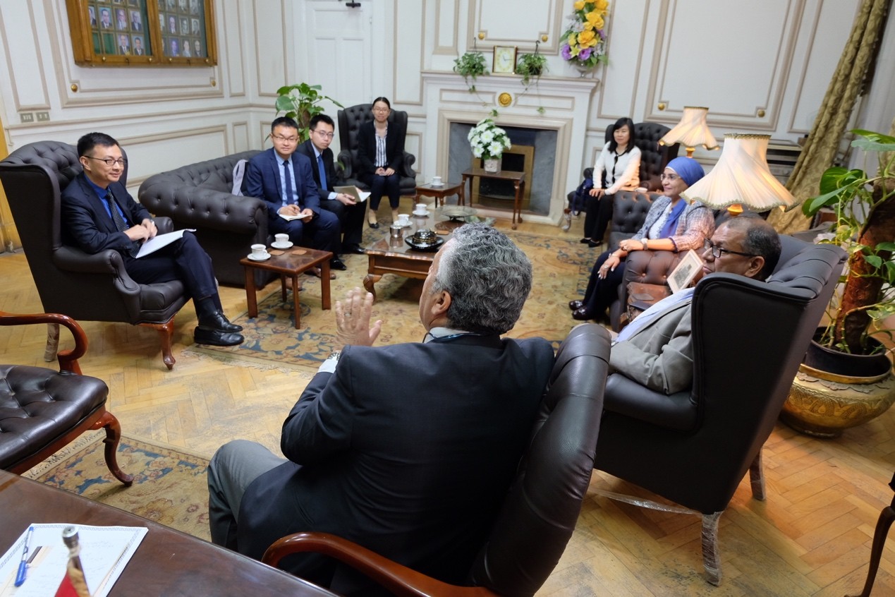团队第二站参访了开罗大学人文学院。学院院长艾哈迈德•沙尔比尼(Ahmed El-Sherbini)和中文系系主任、孔子学院阿方院长李哈布(Rehab)接见了团队师生。双方表示愿意在既有的合作基础上,发挥各自的语言及学科优势,进一步扩展开罗大学人文学院和财神在线官网间的学术合作与人员交流。