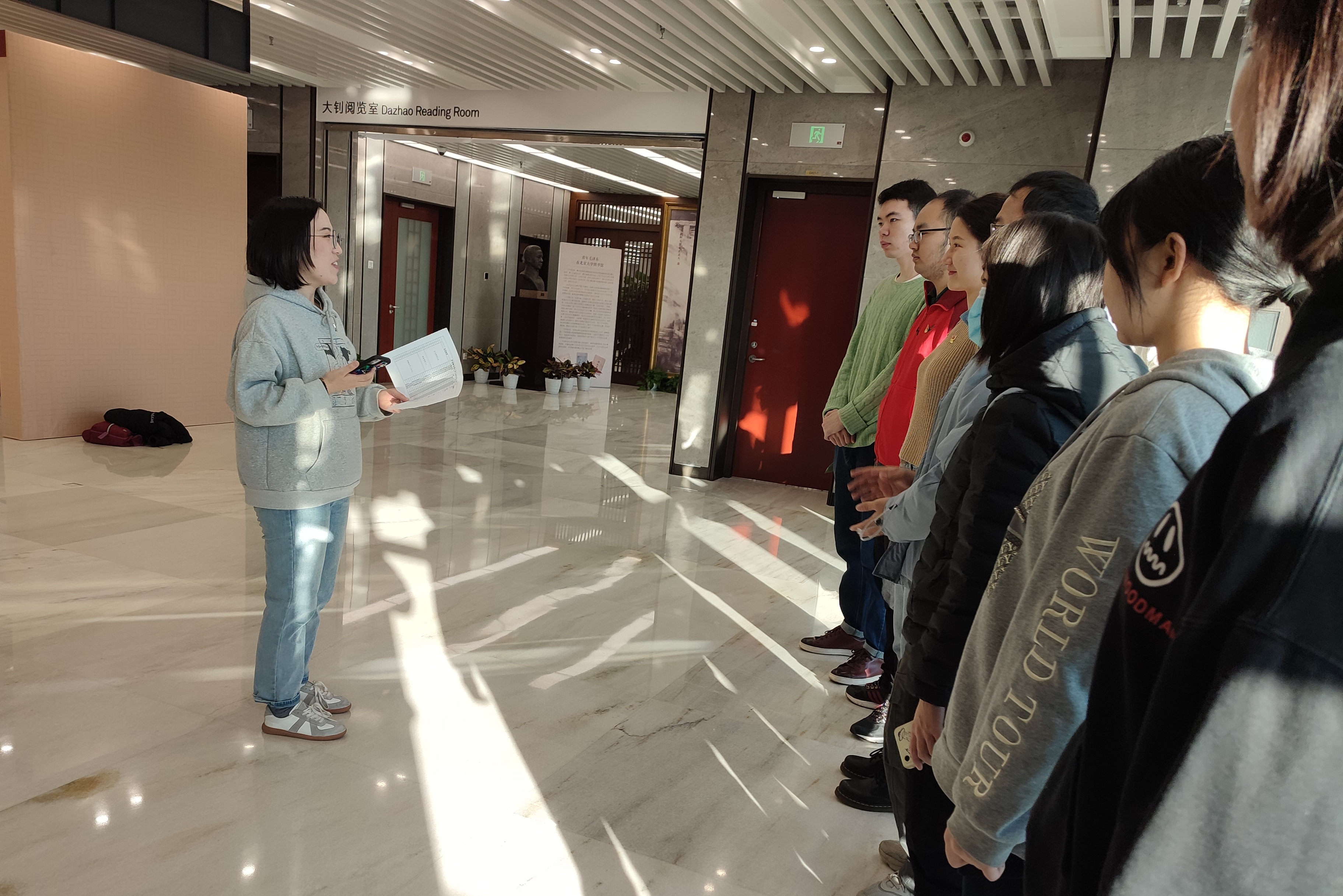 2021年12月7日,财神在线官网英语翻译硕士生党支部组织开展了“百年前北京大学学术系列展·1921”集体观展活动。上午9时,党支部的同学齐聚北京大学图书馆东楼四层大钊阅览室,开展此次主题党日活动。