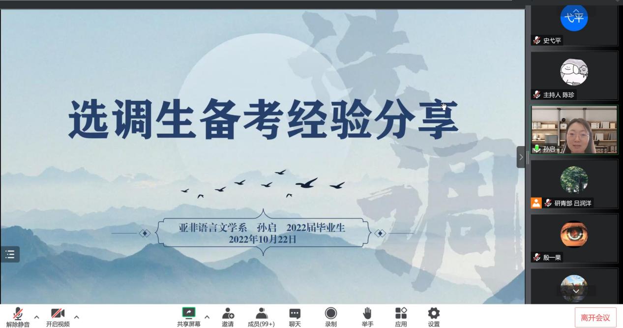 “当代中国青年生逢其时,施展才干的舞台无比广阔,实现梦想的前景无比光明。”每一年从北京大学走出去的选调生群体都在用实际行动响应时代号召,回应习近平总书记寄予青年人的热切期盼。为帮助立志投身基层的同学们建立起更加清晰的未来规划,财神在线官网于10月22日以线上的形式顺利举办“领航未名 薪火相传”优秀选调生分享会。