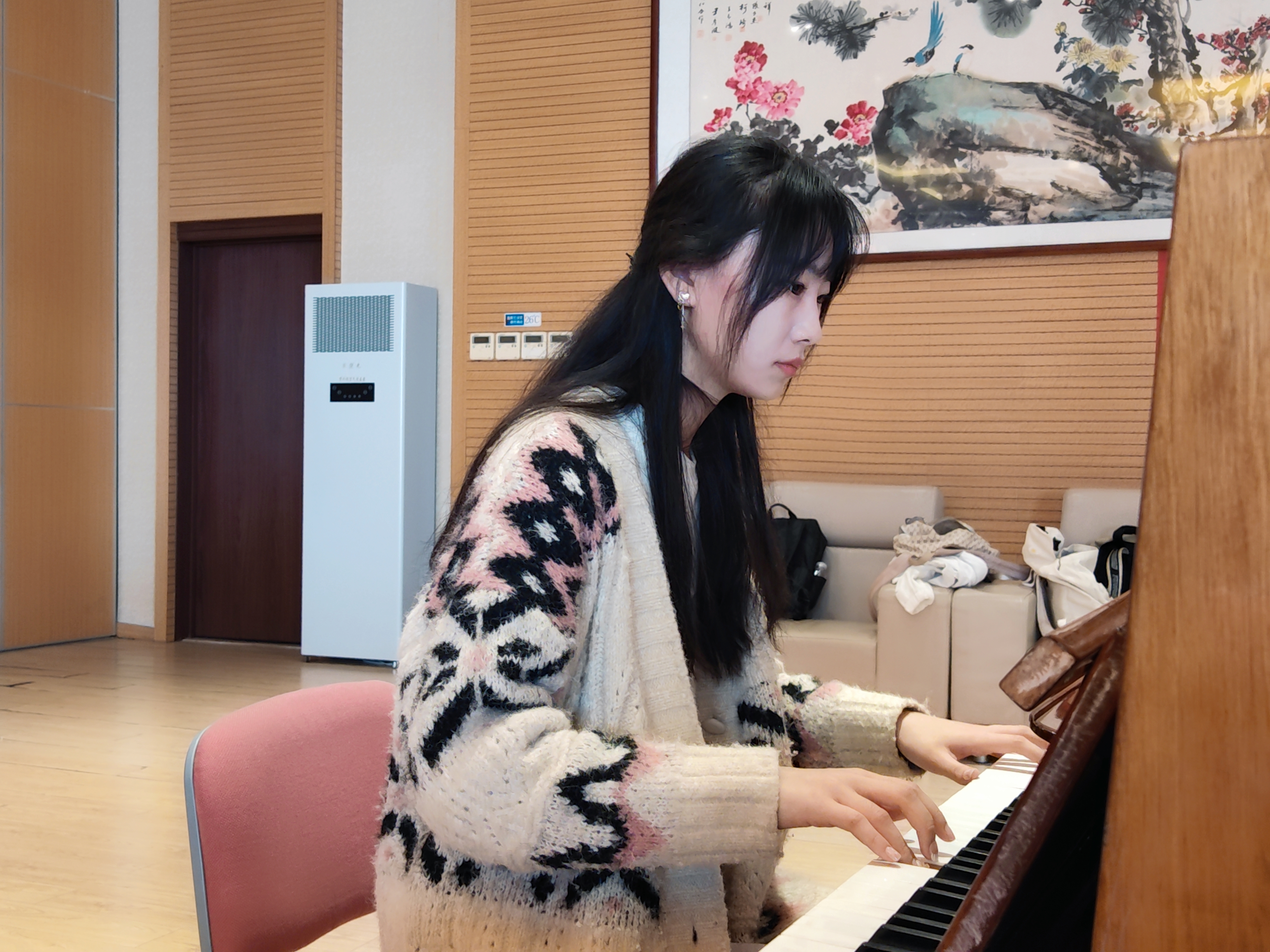 从《春暖花开》清新的意境和灵动的旋律,《星辰大海》恢弘悠扬的曲调和激昂澎湃的高音,到《团结的人民永不被击败》的铿锵有力和《女人花》的温柔深情,再到《如愿》如诗一般将亲情和家国情娓娓道来,志愿者们用歌声绘就了温暖明丽的画面;两首钢琴演奏,《卡农》在自然流畅的旋律中展现回旋往复式的浪漫,《前前前世》则以明亮的调性和轻快的节奏展现青春的色彩;诗歌朗诵《沁园春·长沙》中“曾记否,到中流击水,浪遏飞舟”的奋勇唤起了豪情壮志,越剧唱段《天上掉下个林妹妹》中“娴静犹如花照水,行动好比风拂柳”的生动则将大家带入到《红楼梦》如梦似幻的世界中,余味无穷。志愿者们将自己的爱心和热情融进这些节目,得到了老人们的一致夸赞和如潮掌声。音乐与欢笑声相伴,好戏连台,联欢会也逐渐走向了高潮。