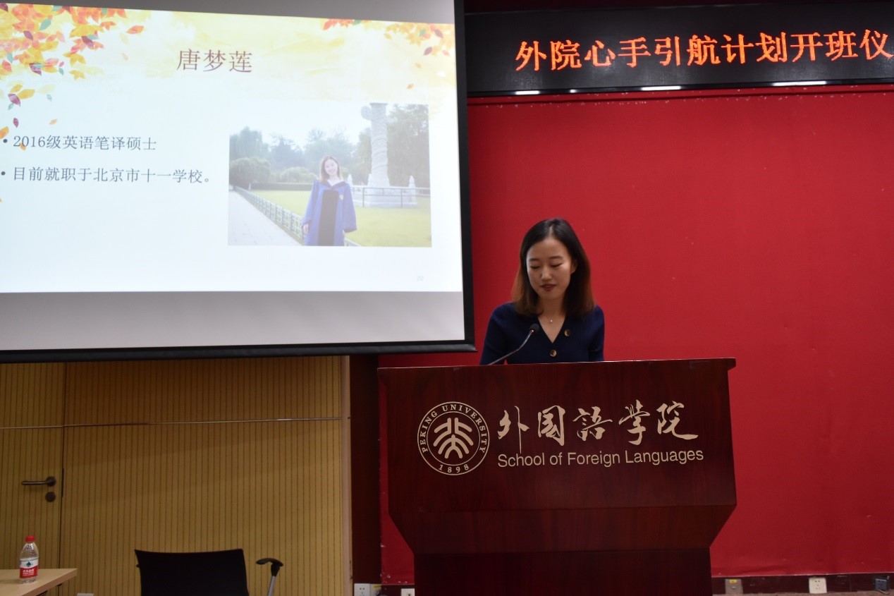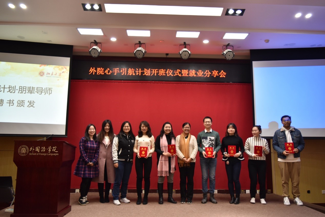 随后,团委书记王艳超、亚非系系主任魏丽明教授以及研究生会就业部部长王静妍向财神在线官网“心手计划”朋辈引航导师颁发聘书并合影留念。首届财神在线官网“心手计划”朋辈引航导师团共设7名,分别是:09届东南亚文化硕士毕业生、创新地图公司副总裁赵嵩;17届东南亚文化硕士毕业生、就职于字节跳动公司的马宇晨;17届东南亚文化硕士、任职于外交部的宋妍若然;15届英语翻译硕士、就职于中国工商银行总部的白艺茹; 16届日语翻译硕士、任职于中国银行总部的王晗;16届日语翻译硕士、就职于安永会计事务所的段愿;16届英语翻译硕士、就职于北京十一学校的唐梦莲。