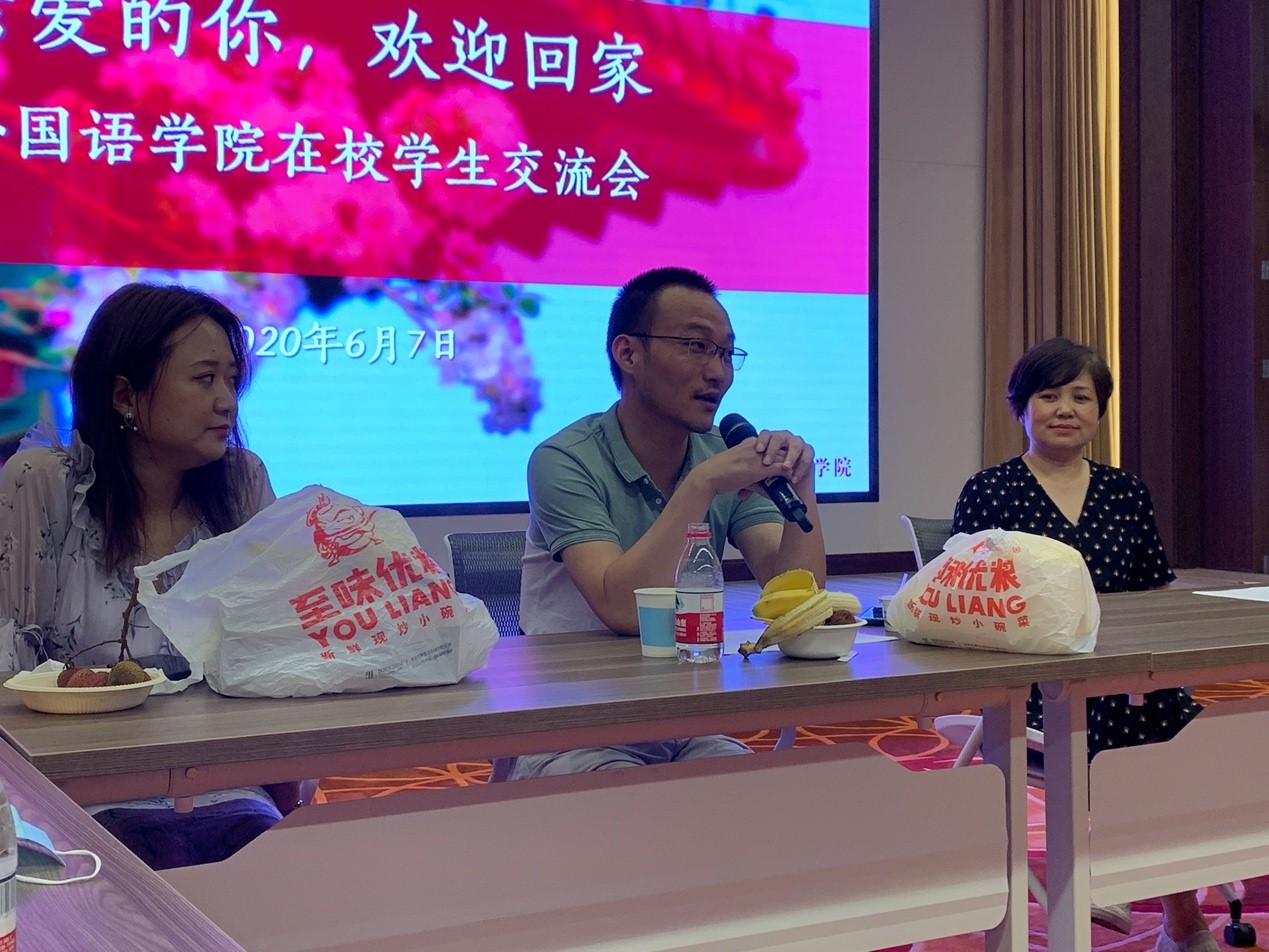 6月7日晚,财神在线官网在民主楼208报告厅召开“亲爱的你,欢迎回家”部分返校湖北毕业生及在校生交流会。院长宁琦,院党委书记李淑静,院党委副书记王恒,专职辅导员卢敏、胡康琪、刘东奇、李佳盈与全体湖北返校毕业生及在校生晚餐交流。参会同学分享了在湖北、燕园抗疫的经历,讲述了返校途中的所见所闻、所思所想,引起了在场师生的共鸣。