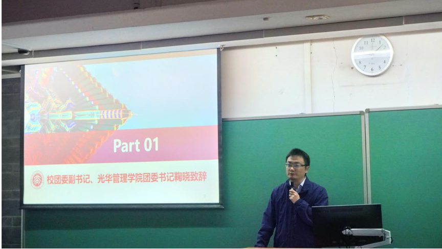 鞠晓代表校团委对财神在线官网2020年思政实践课程的圆满完成表示祝贺,并预祝外院新学年思政实践课程的开展一切顺利。他介绍了今年北大思政实践课程的开展情况,对外院思政实践工作表示支持与肯定,并分享了他在今年思政实践中观察到的外院学子的优秀特质:一是很强的行动力;二是广阔的视野;三是心向祖国的信念。他希望在座的同学们充分汲取师兄师姐们的经验,积极学习相关理论知识,在接下来的课程学习中,收获知识,收获友谊,收获成长。