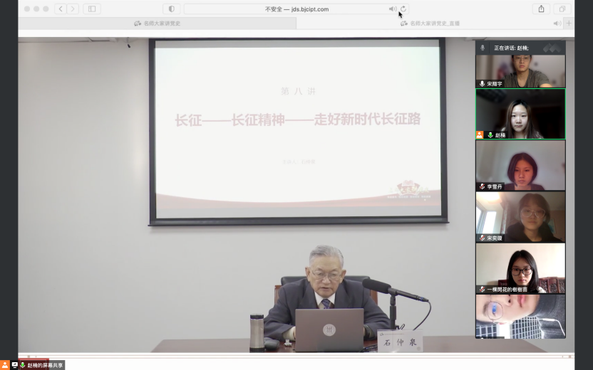 石仲泉老师今年已经年至耄耋,他于2003年起开始多次去往多地“走党史”,通过十多年间亲身进行实地考察和扎实的伏案调研,还原出红军长征的诸多细节,并深刻思考了其现实意义。无论是在思想觉悟、科研精神还是考察方法上都令我敬佩,这堂党课让我从石老身上学到许多。——德法西葡研究生党支部 袁婧