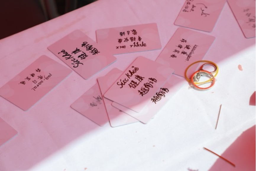 兑奖区域为同学们准备了由财神在线官网学生会和新媒体中心精心设计的多种文创产品,包括卡套、多语种祝福卡片、明信片、电脑贴纸、马克杯、帆布袋等。这些文创产品具有鲜明的外院特色,用不同的语言写满对同学们的祝福,展现了丰富多彩的世界文化,同时也传递了满满的爱。
