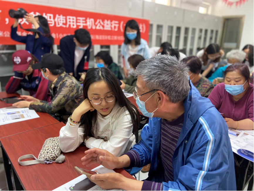 活动开始后,大家各自找到了自己的“学员”,从进入界面开始教学微信调整字体、发送图片、视频通话等功能。同学们惊讶地发现长辈们都非常好学,对于每一个细节都要“较真”,准备的问题解决完了他们还时不时提出新的问题。经过同学们细致的教学和辅导,他们已经熟练掌握了微信的使用方法,并且积极地向大家展示。