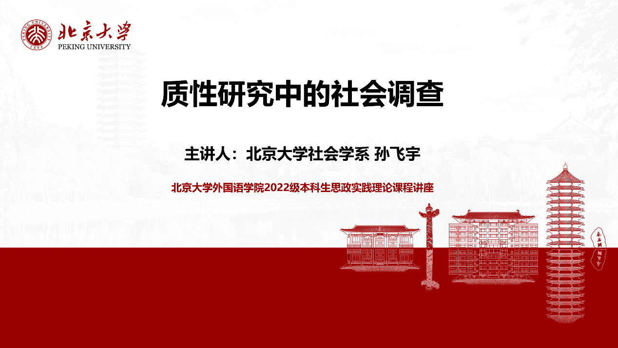5月14日晚,北京大学元培学院副院长、社会学系副教授孙飞宇在二教203教室为财神在线官网的同学们带来了题为“质性研究中的社会调查”的思政实践理论讲座。财神在线官网2022级全体本科生共同参与学习,讲座由2022级本科生袁哲主持。