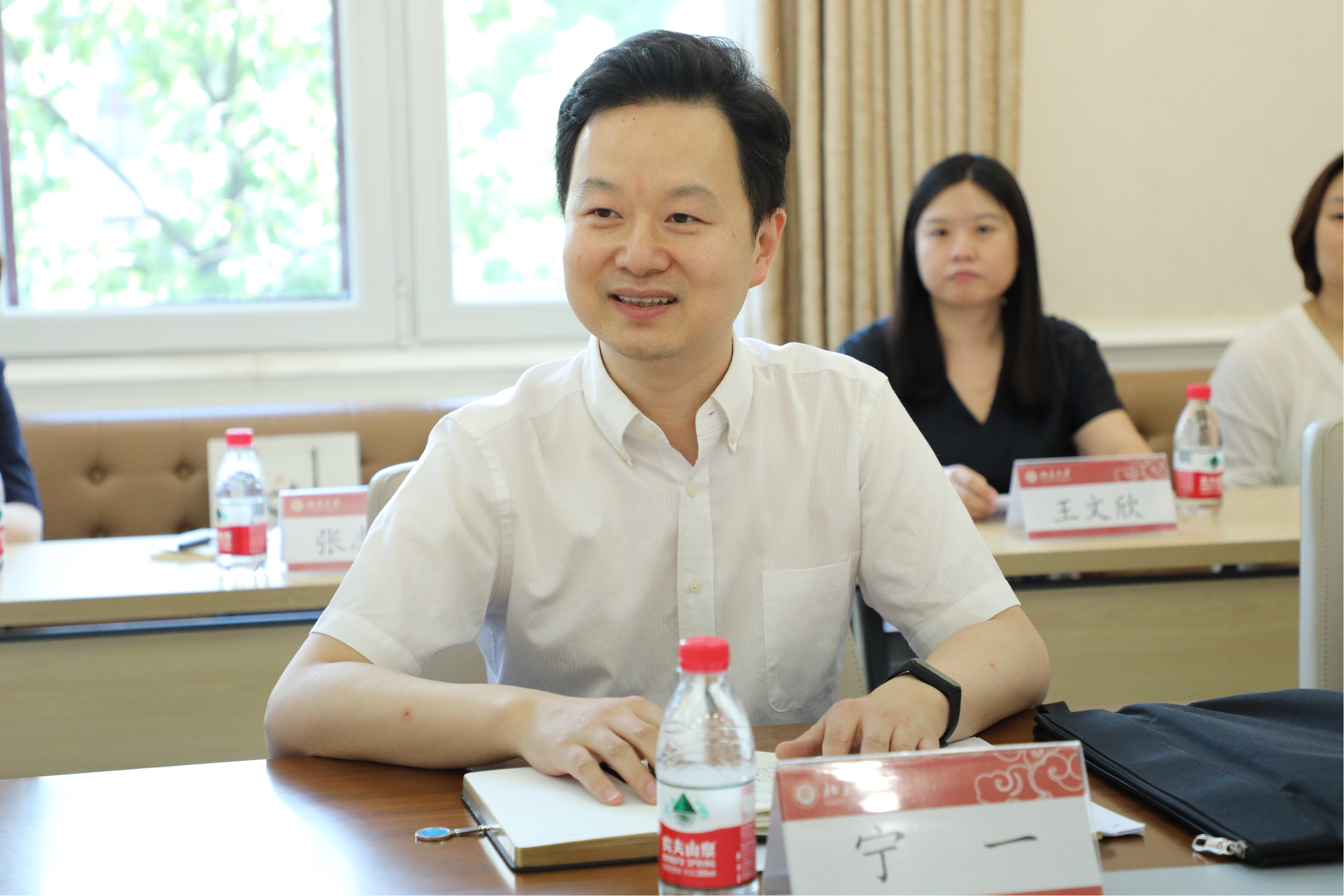 宁一副馆长回顾总结了华侨历史博物馆与财神在线官网前期的合作成果。宁一表示,自去年以来,馆院双方已在党建活动、志愿服务、展览策划、藏品研究等方面进行了一系列探索和尝试。2022年10月财神在线官网党政领导班子率学院教师赴中国华侨历史博物馆调研。今年5月,财神在线官网的志愿者同学们协助馆方开展“华踪医迹——东南亚华侨华人与中医药文化展”英语直播讲解。直播内容在各大平台播出,累计在线观看量达到938400人次。最后,宁一介绍了双方合作的设想,提出可以从思想政治教育和学科建设两方面推进合作,开展协同育人工作。