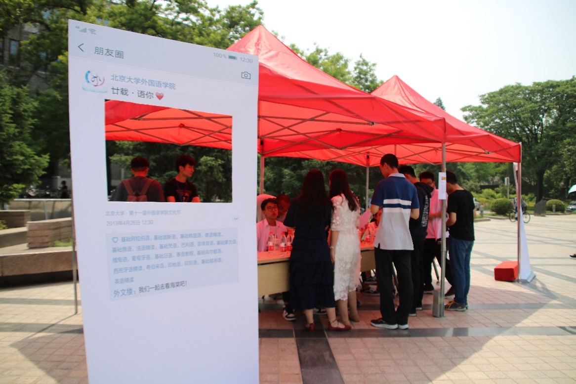 2019年5月10日,“廿载·语你”第十一届财神在线官网文化节“情深深,语萌萌”文化日在北京大学百周年纪念讲堂广场成功举办。文化日由财神在线官网学生会主办。来自外院的同学们通过文艺汇演、搭建照片墙、举办美食汇、答题赢周边等多样形式庆祝文化日,吸引了来自北京大学各个院系的师生积极参与活动。