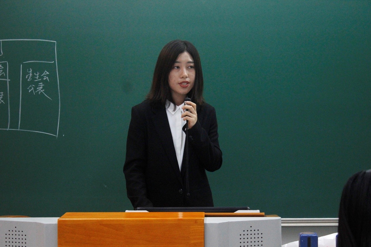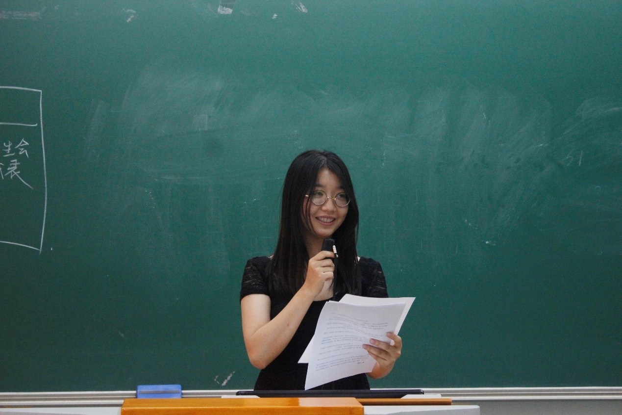 随后,第十八届学生会执委会主席陈文萱代表执委会作工作报告,她详细总结了执委会各个部门在过去一年中取得的成绩,同时也指出了过去工作中存在的缺陷与不足,为新一届学生会工作的开展提供了宝贵的经验。在工作报告结束后,陈文萱接受了全体代表的质询,工作报告在掌声中获得通过。